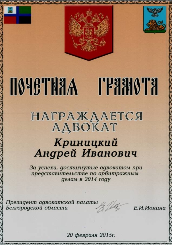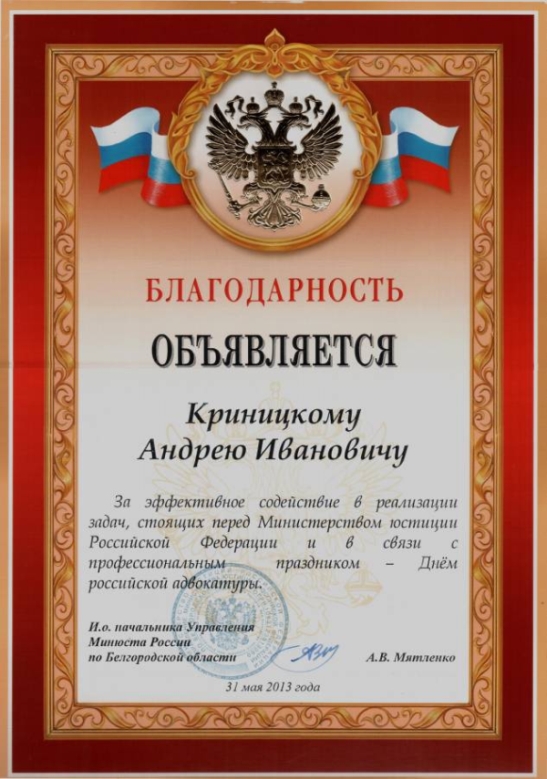 Сведения об адвокате внесены в реестр адвокатов адвокатской палаты Белгородской области за номером 31/171.